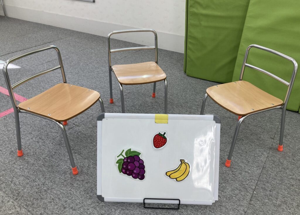 ①「自分のフルーツが呼ばれたら、椅子を立って違う椅子に座る」